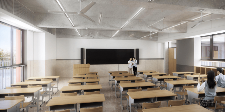(1)班级规划:学校规划36个教学班,每个年级12个班,中等规模,与新高考“3+1+2”选课走班12种组合完全匹配,满足所有学生不同组合的需求。