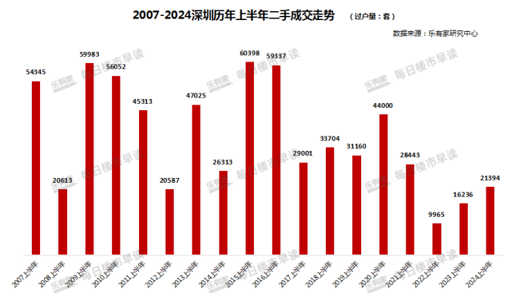 2024年上半年已结束,乐有家研究中心最新数据统计显示,1-6月全市二手住宅过户成交21394套,同比2023上半年上涨32%,是近3年上半年的新高。