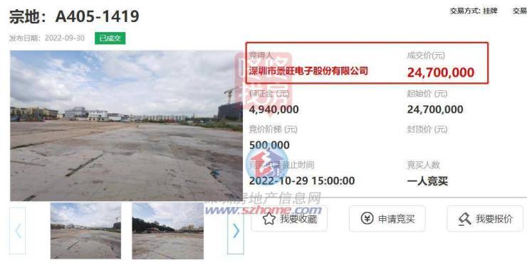 深圳市景旺电子股份有限公司以底价2470万拿下宝安燕罗工业用地,该地块土地面积18001.6平方米,建筑面积69300平方米,挂牌起始价2470万元,土地使用年限30年。