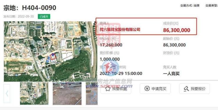 周六福珠宝股份有限公司以底价8630万元竞得罗湖清水河的新型产业用地(H404-0090)。