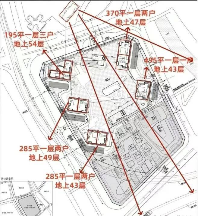 总建筑面积318235平方米,其中,住宅建面125644平方米,酒店地上建面37000平方米、地下建面3000平,办公25570平方米,商业地上建面13516平方米、地下建面1484平方米,项目还有建面3000平方米的社康服务中心、1459平方米的文化活动室等。