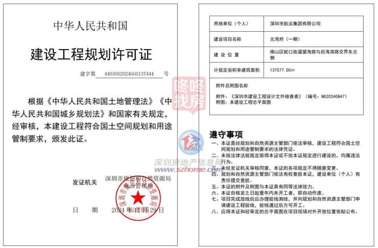 建设规划许可证于11月末取得,用地单位为深圳市航运集团有限公司(中信城开旗下公司)。