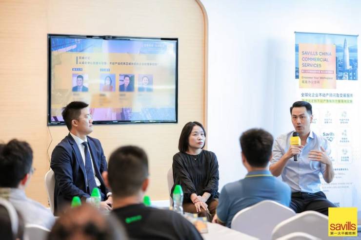第一太平戴维斯深圳董事总经理吴睿,第一太平戴维斯深圳商业楼宇部负责人、高级董事罗志文,福斯特与合伙人事务所合伙人钱震,穆氏建筑设计总监陆政宜等出席活动,围绕科技企业全球化进程中面临的不动产挑战与机遇展开了深入交流,共探深圳不动产市场的前沿动态与发展趋势。本次活动汇聚了众多来自国际和国内头部科技企业的不动产管理、设施管理领域代表、行政总监及企业高管,共同探讨科技企业在全球扩张过程中不动产策略与空间规划的核心议题。