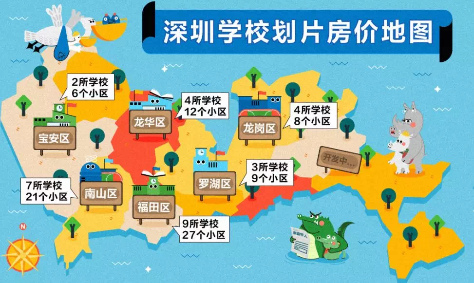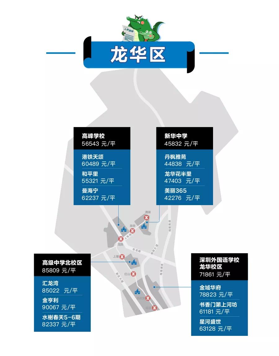 最后代表龙岗登场的一共是4所学校,有11个对应小区,相较于其他区域更容易上车。