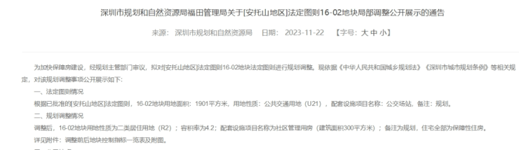 据了解,该宗地用地性质原为公共交通用地,11月调整为二类居住用地,住宅全部为保障性住房。