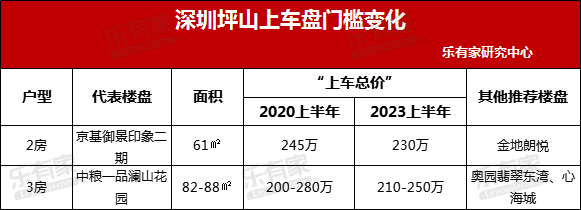 房价下调后,深圳各区的上车盘门槛也有了显著变化。