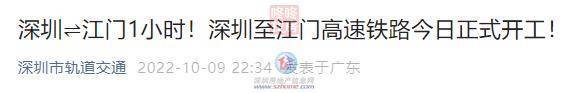 据@深圳市轨道交通消息,深圳至江门高速铁路于10月9日正式开工。