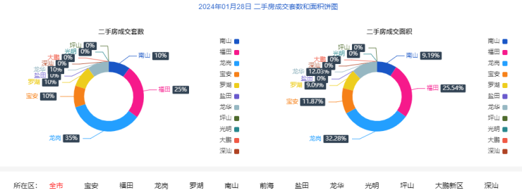 2024年1月28日新房住宅共网签58套。宝安12套;福田1套;龙岗8套;罗湖1套;南山6套;盐田0套;龙华9套;坪山9套;光明9套;大鹏0套;深汕3套。2024年1月28日二手房住宅网签16套。宝安2套;福…
