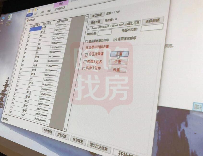 按照公示的摇号规则,我处于今天上午对开发企业提供的数据进行了初步的数据查重工作,该台电脑在清空数据后予以封存,作为本次摇号活动的备选设备。
