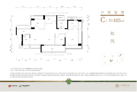 建面约105㎡户型为大横厅设计,室内尺度宽阔,可作3+1空间使用。