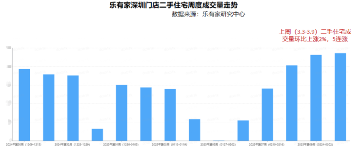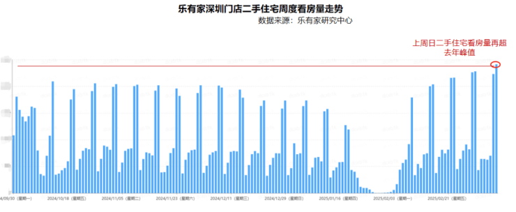 据乐有家研究中心数据,上周日(3月9日)深圳二手房住宅看房量再创新高,超过去年10月新政后峰值的15%。