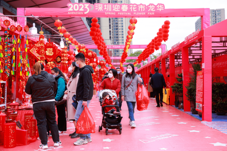 2023年龙华区采用“1+N”的模式举办迎春花市活动,即1个主会场加若干个分散的购花点,营造新春嘉年华氛围,弘扬传统民俗文化,培育花卉产业,促进节日消费。