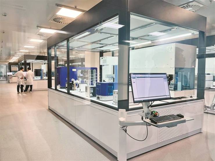走进合成生物大设施的合成测试平台,一个个长方体自动化功能岛相当于全自动化运行的“车间”,多个“车间”组成一条生命的流水线,可完成人工生命“设计—合成—测试—学习”等多个工艺,且可根据需求变化实现柔性化集成。据悉,整个大设施里将有30多个这样的功能岛,它们共同组成了一座现代化的“生物铸造工厂”。