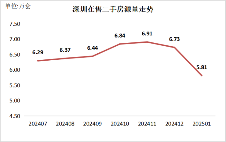 截至2025年1月末,深圳全市新房住宅库存量为32194套,环比上月底减少约6000套,相较于2024年同期则减少了近2万套。