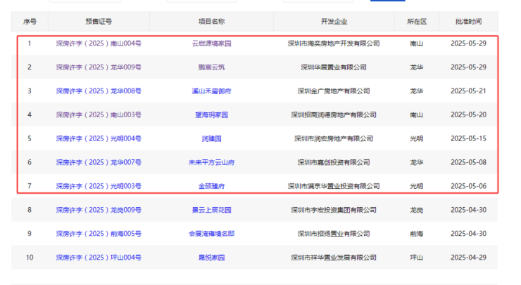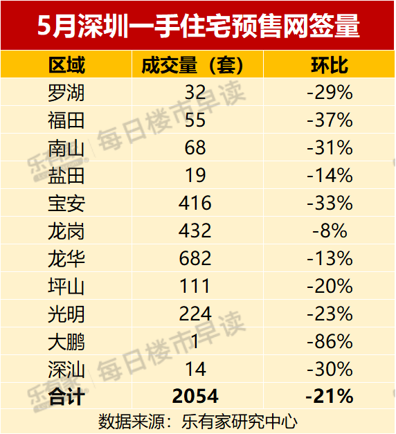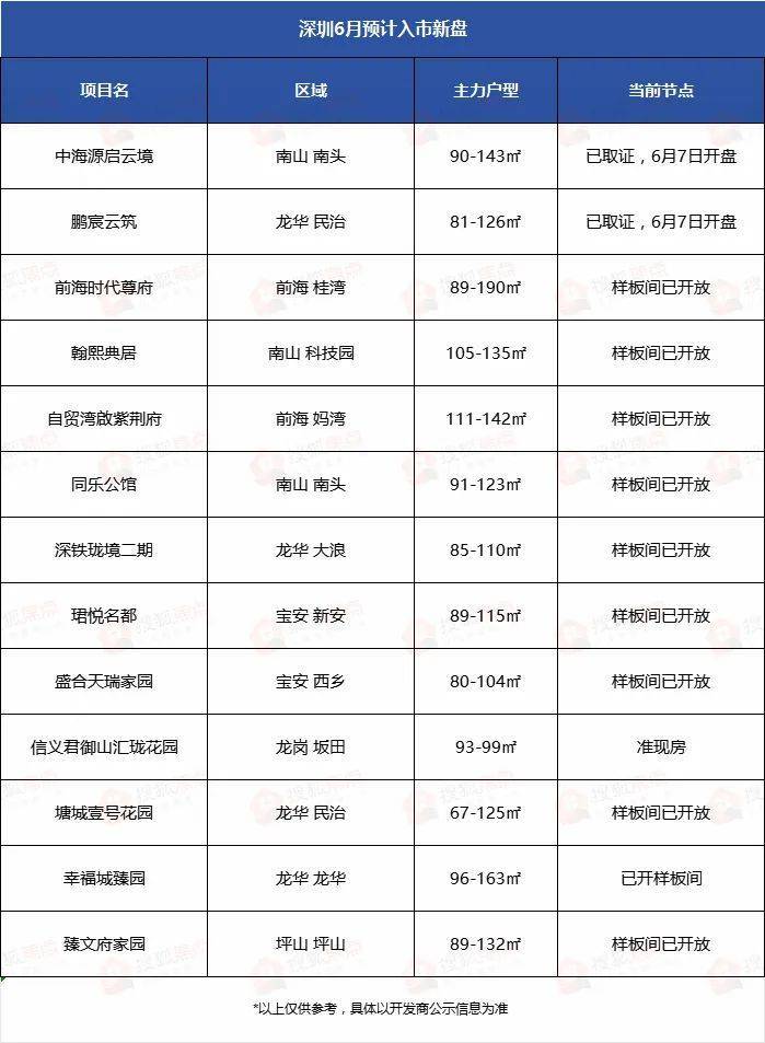 其中,南山(含前海)共有5个项目、龙华有4大新盘,两区成为6月新房的供应主场。