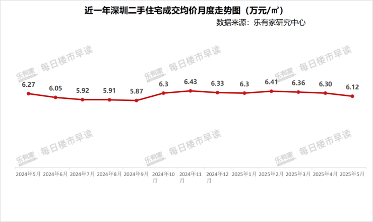 据统计,5月深圳二手房成交价坚守6字头大关,为6.12万/㎡,环比下降2.9%。