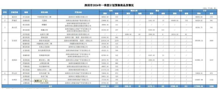 1月18日,深圳市住房和建设局公示了“深圳市2024年一季度计划入市商品房房源信息情况”。