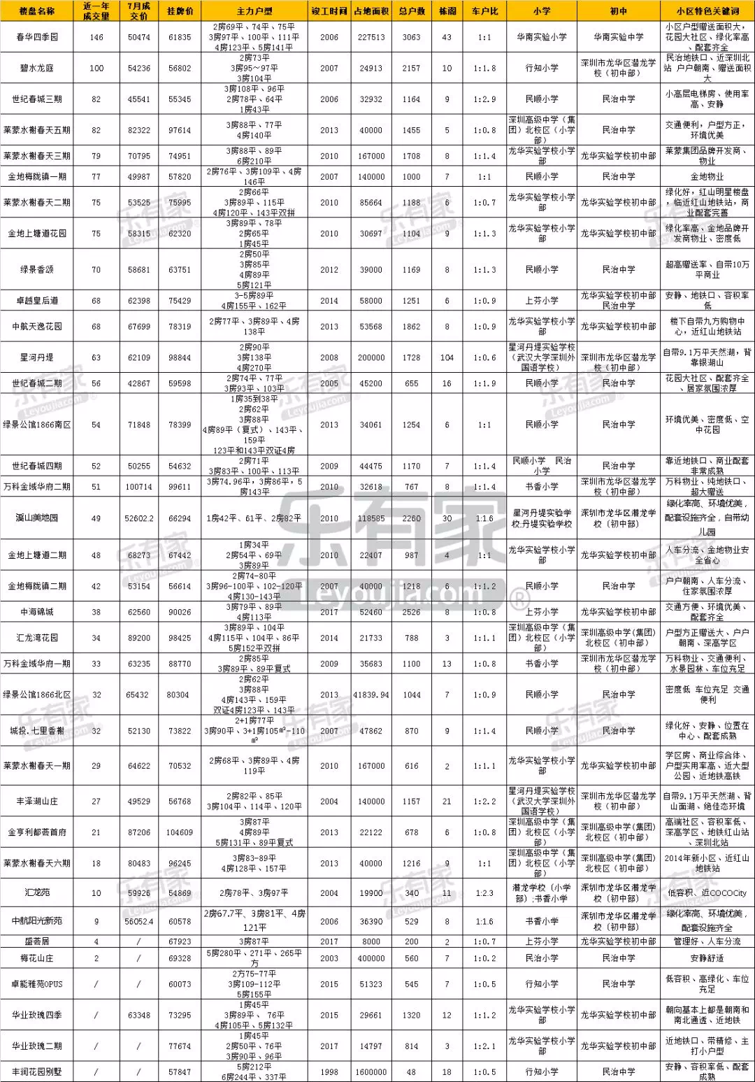 民治片区二手房楼盘大概200个左右,7月份成交均价为49978元/㎡,目前挂牌均价61627元/㎡,民治片区的建成区小区稍微老旧,基本都在10年到20年的一个楼龄,均价大概在4.5-5.2万元/㎡;在民治二线拓展区小区比较新,基本楼龄都在10年以内的,深圳市高级中学龙华小区学区的房子均价在8.5-9.5万元/㎡的价格,例如金亨利都会首府、汇龙湾花园,莱蒙水榭春天五六期;其他区域单价基本在6.8-7.6万元/㎡。