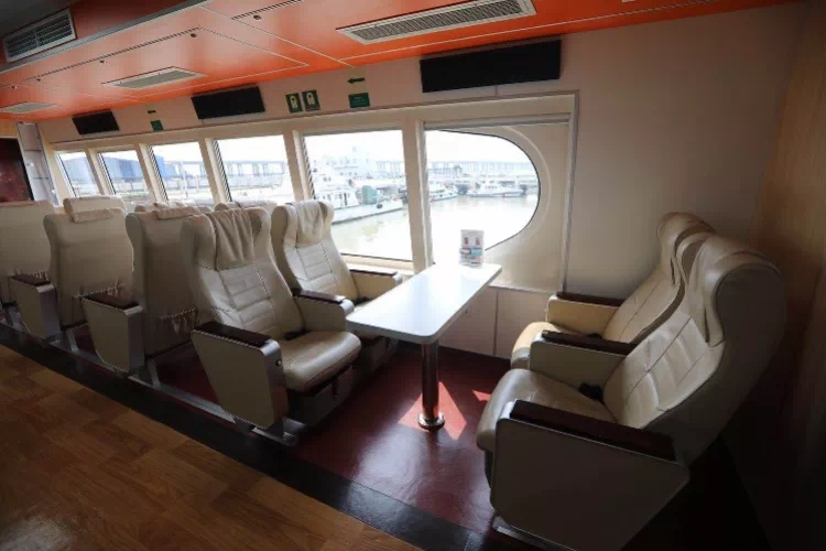 同时,船内配置了很多人性化的设施设备——母婴室、VIP室、头等舱真皮座椅等等,保证乘坐舒适性,而且所有靠窗座位还增加了遮阳窗帘、电源及USB充电口等,以后坐船可以边充电边玩手机了。