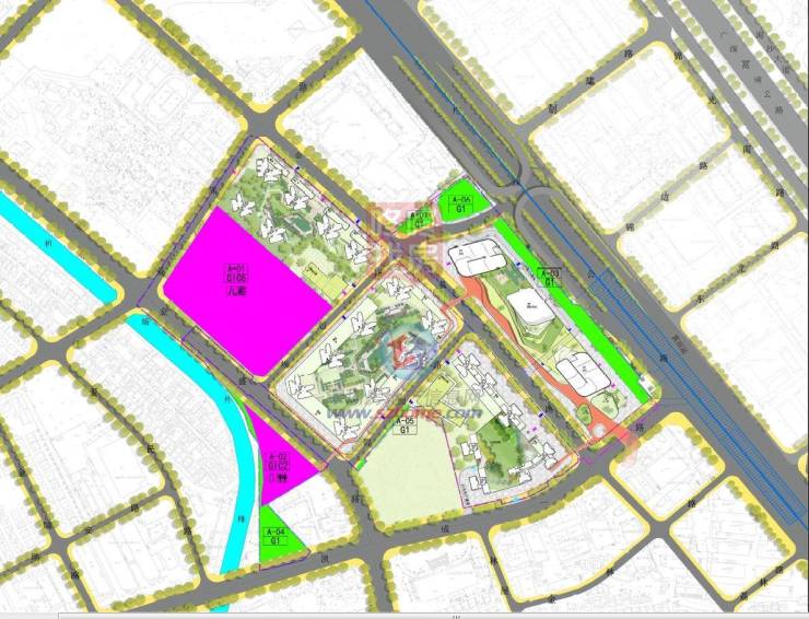 项目含3块居住用地,1块商业用地、1块教育设施用地,多块公园用地。