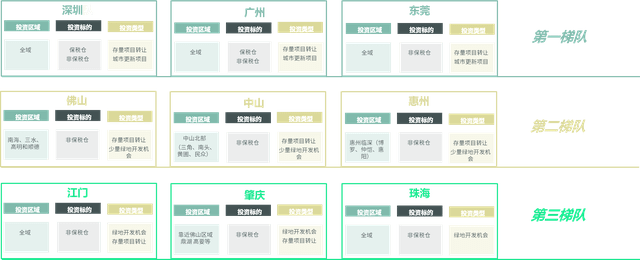 结合湾区内地九市物流设施投资三梯队中各城市物流设施市场发展现状、项目特点、物流用地及相关政策规定,CBRE提出了湾区内地九市物流设施市场的具体投资策略。