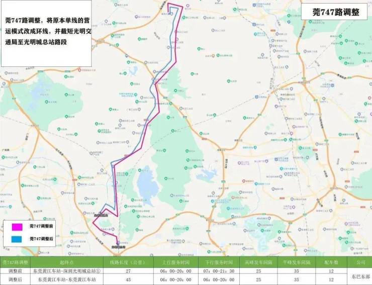 莞747线调整为东莞黄江车站-东周小学-东莞黄江车站,单环线。