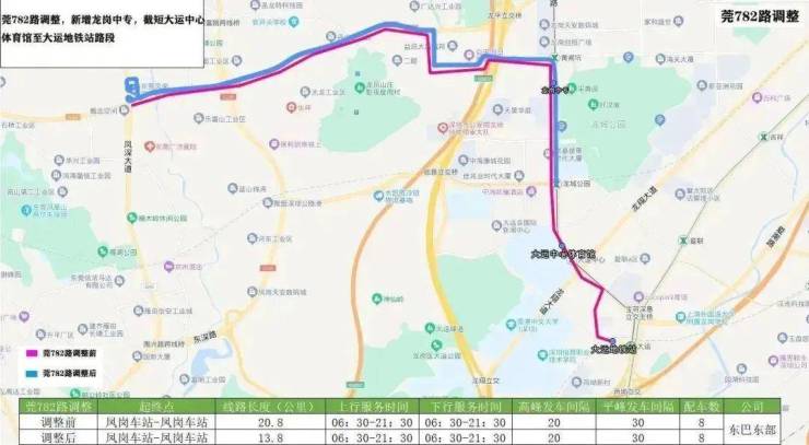 莞782线调整为凤岗车站-黄阁翠苑-凤岗车站,单环线。
