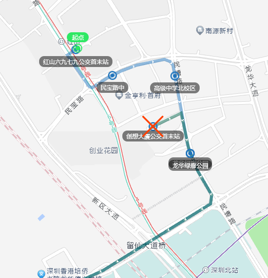 往民治股份商业中心公交首末站方向增加“龙华绿廊公园”1个单边公交停靠站。
