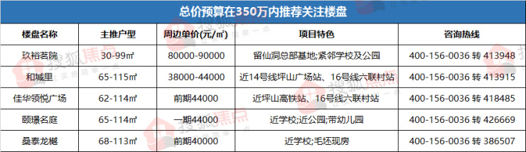 据搜狐焦点运营中心统计,目前深圳还有少量总价在350万内的新房住宅,其中在售且相对热销的新房住宅有3个,分别是坪山的豪方东园、润樾山,以及龙岗的吉祥悦府。豪方东园,目前在售最小建面为88平3房2厅2卫户型,总价约330万起,项目近建设中的16号线东纵站,且是带装修准现房,预计今年9月30日交房,总体相对不错;润樾山是华润置地、招商蛇口联袂开发的住宅项目,总建面约18万㎡,体量适中,项目近建设中的14号线沙湖站,附近还有老牌学校汤坑小学,目前在售最小建面为86平,总价约330万起;龙岗的吉祥悦府目前在售最小建面89平3+1房设计,能够满足3代同堂的居住需求,项目总价约340万起,为毛坯现房,又近3号线东延线坪西站,刚需可以参考一下。