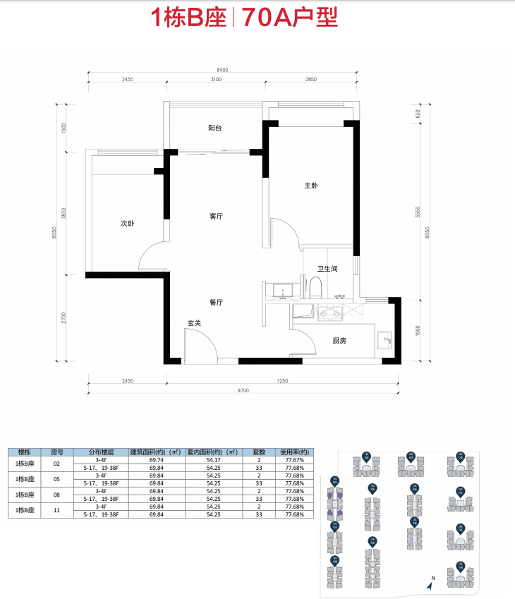 项目70㎡的户型主要有经典竖厅和双龙抱珠两种格局可选;90㎡则均为普通竖厅格局。部分户型图展示如下: