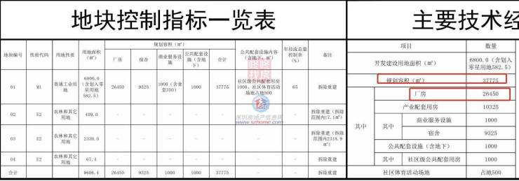 据规划显示,项目规划容积37775平方米,其中厂房26450平方米,产业配套用房10325平方米〔其中商业服务设施1000平方米(含食堂350平方米)、宿舍9325平方米〕,公共配套设施(含地下)1000平方米(其中社区级公共配套用房1000平方米)。另配建社区体育活动场地占地500平方米。