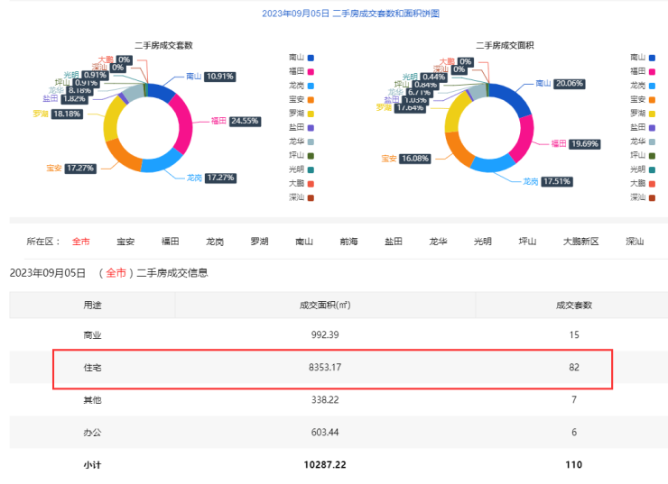 9月5日二手房住宅网签82套。宝安15套;福田17套;龙岗15套;罗湖16套;南山12套;盐田2套;龙华4套;光明0套;坪山1套;大鹏0套。