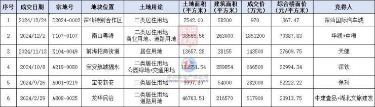 深圳2024仅成交6宗宅地,吸金能力却很惊人!打败前年14宗总和