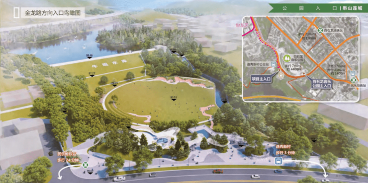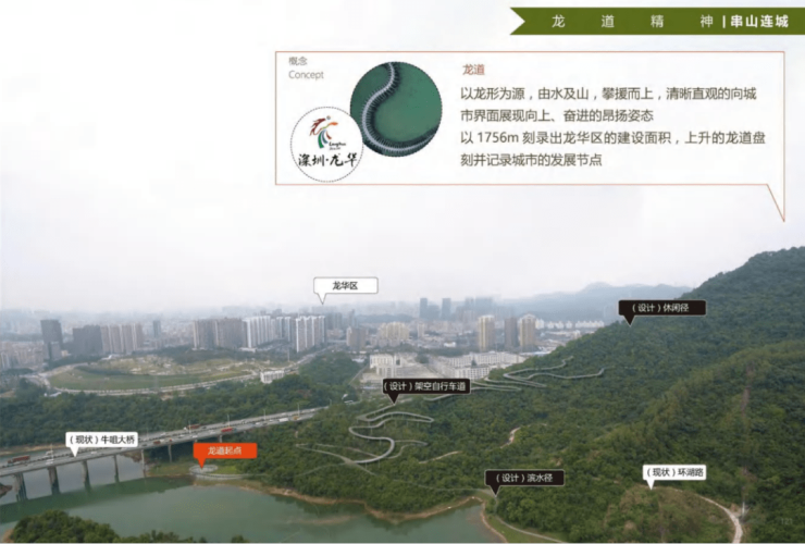 展现龙华最具山水城市精神的南门户公园,构建独特的城市滨水和郊野山林体验的自然城市公园,独具自然生态和科普精神的研习公园,让市民从城市到公园,从公园到山里和水边。