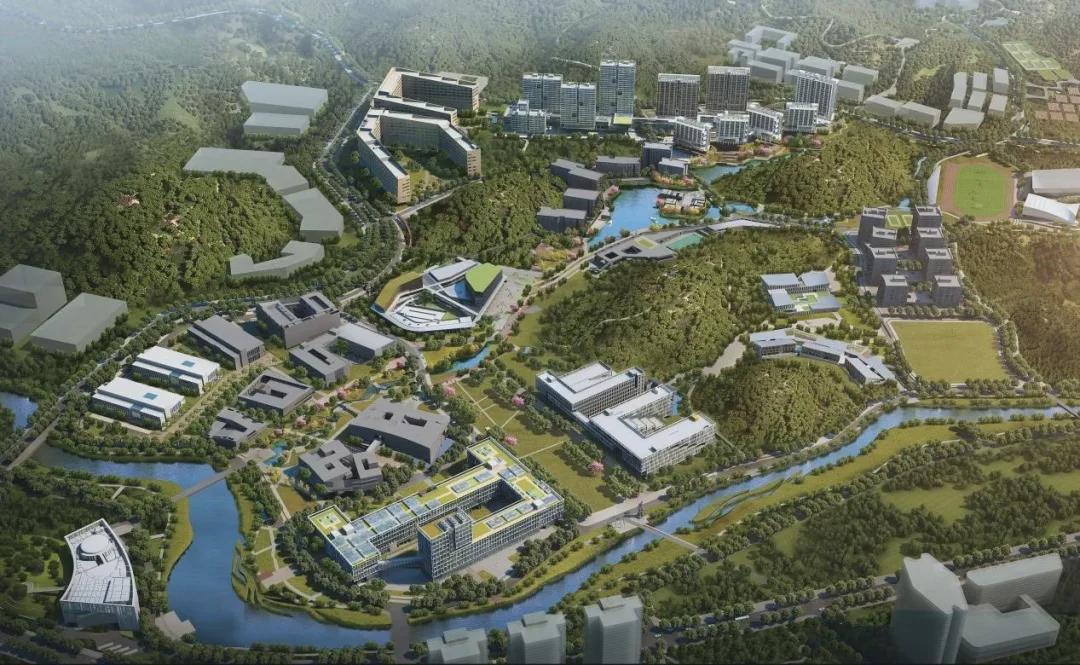 项目结合一期校园建设情况,采取“一环(溪流花园环)、两轴(校园学术主轴和人文景观体验轴)、三廊(学术天街廊、自然山水廊和大沙河景观廊)”的布局规划,在九山一水的校园山水格局下,打造既富有岭南园林特色,又符合国际化标准的校园。采用紧凑型、有利于促进融合交流的步行校园发展模式——学科社区,保留足够的产学研合作空间。