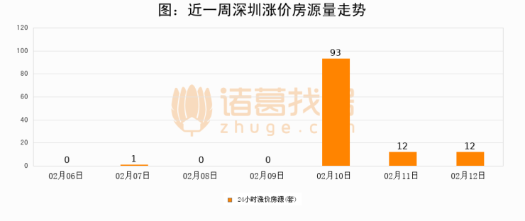 根据诸葛找房数据显示,深圳24小时涨价房源量为12套,较02月11日持平。