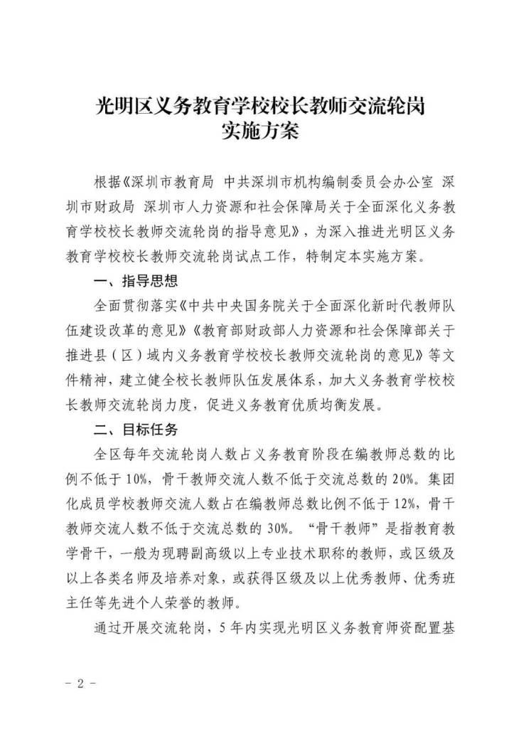 近日,据自媒体爆料,《光明区义务教育学校校长教师交流轮岗实施方案》(以下简称方案)已经发布,宣告深圳教师和校长轮岗正式开始!