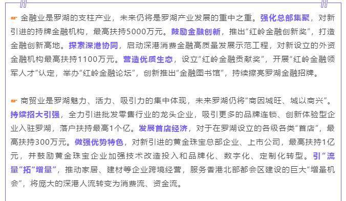 一是企业租房、政府扶持。罗湖通过产业发展资金政策为总部企业、科技创新企业、金融机构等按一定比例提供扶持,新引进的金融机构最高可达3000万元,其他企业最高可达1500万元。