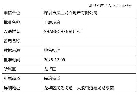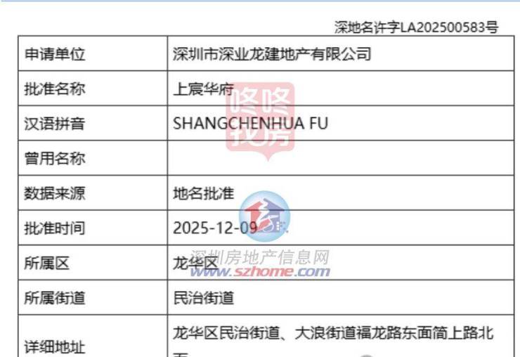 日前,位于龙龙华区民治街道(A815-0036宗地),备案名为上宸瑞府;随后,连片的A815-0037地块也更名为上宸华府。