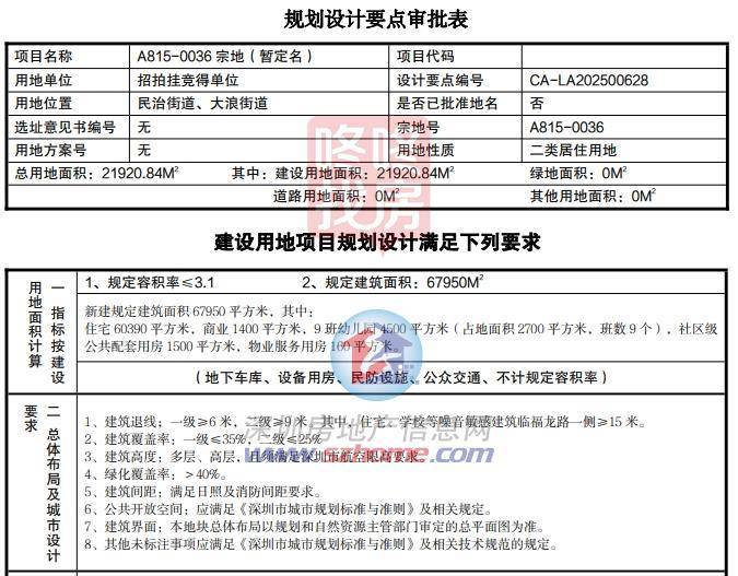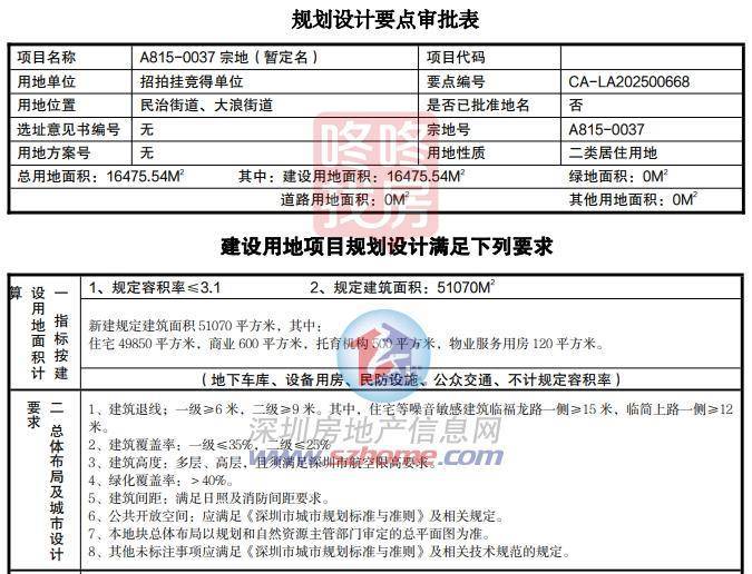 A815-0037 宗地规划设计要点显示,新建规定建面51070平方米,其中:住宅49850平方米,商业600平方米,托育机构500平方米,物业服务用房120平方米。密度3.1。