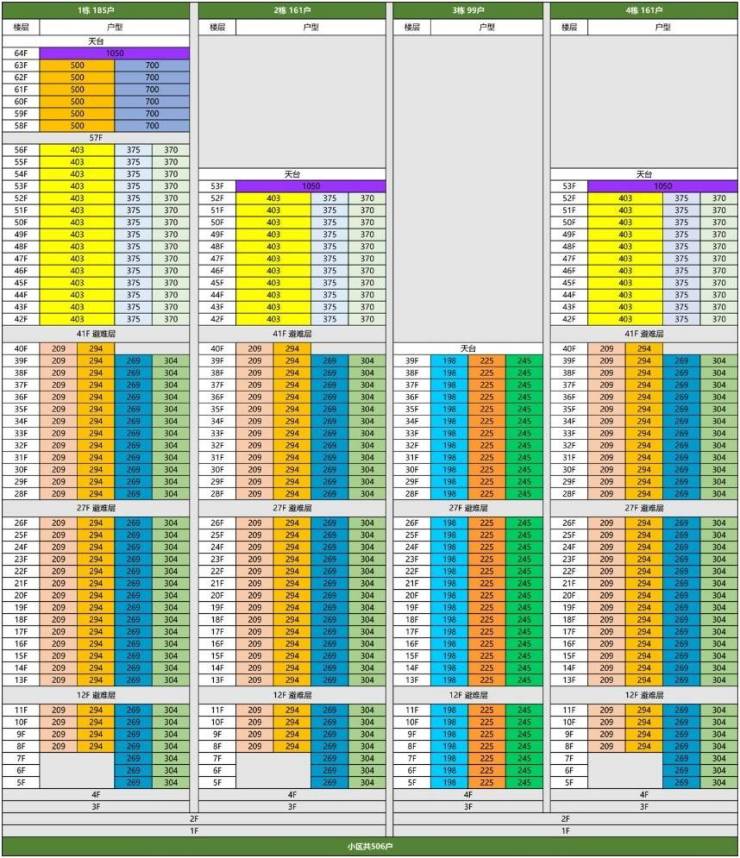 低区(5层起,150米以下):约209-304㎡,四房及以上大户型;