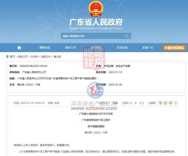 1月29日,广东省政府办公厅印发《广东省培育扶持个体工商户若干措施》(以下简称《措施》),《措施》从降低经营成本、强化金融扶持、减轻税费负担、优化营商环境、拓展发展空间、加大服务供给等六个方面,提出了31条具体举措,进一步提振个体工商户经营信心,持续激发个体工商户的活力和创造力,为推动广东经济社会高质量发展注入新活力。