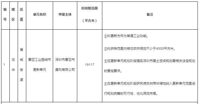 龙华第二批更新计划公示,赛亚工业园更新入列
