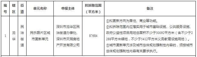 龙华片区的第一批城市更新计划是在今年1月份公示,民乐路片区城市更新单元入列。