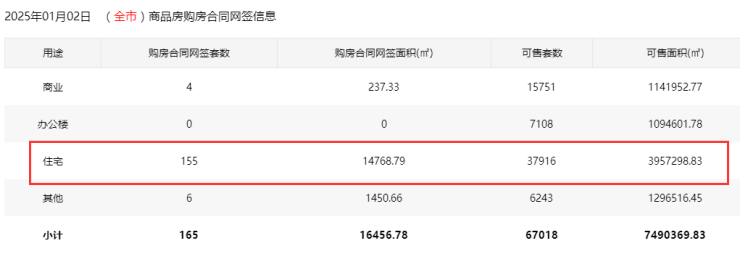 1月2日深圳新房住宅合同网签155套 二手房住宅成交224套