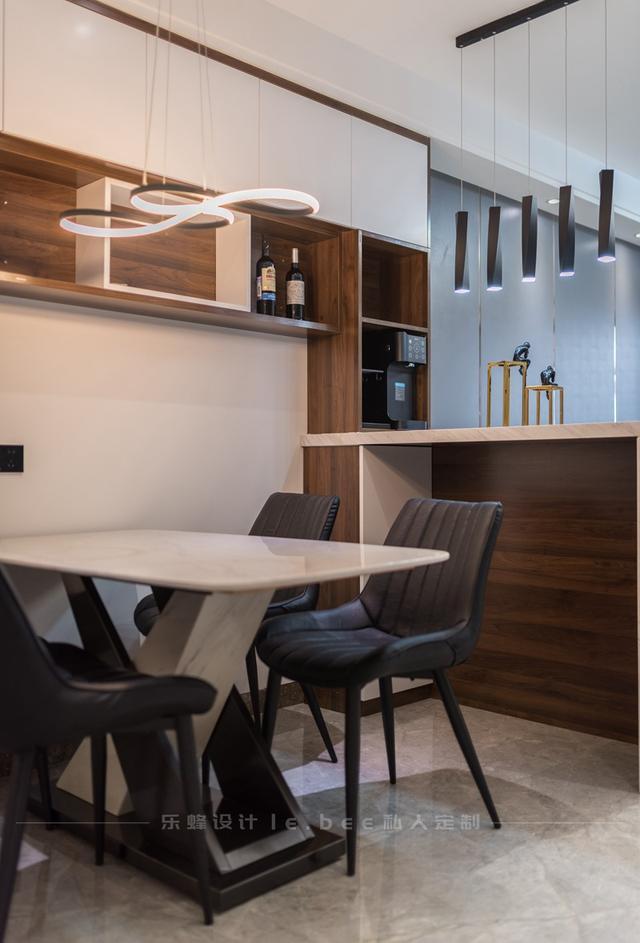 贴心的莫工特意将两位的餐厅移至玄关旁,并把自己对三口之家的情意寄于舒软的餐椅。精心规划的动线佐以精心挑选的器具,方便男女主用完早餐后即可能量满满的出门上班。
