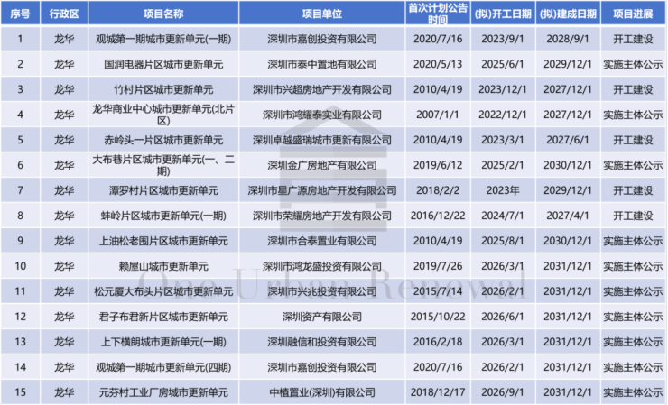 龙华区共15个项目入选。其中,10个项目实施主体公示,5个项目开工建设。