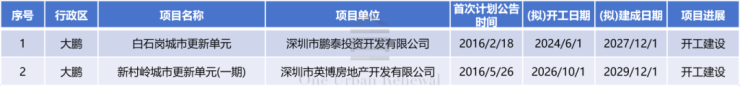 大鹏新区共2个项目入选。其中,2个项目均为开工建设。