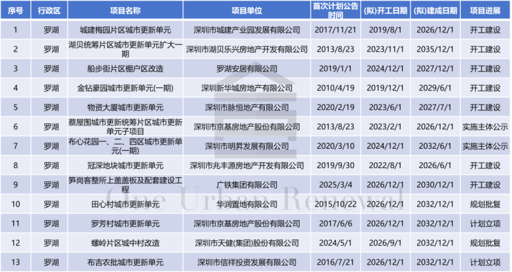 罗湖区共13个项目入选。其中,有2个项目计划立项,2个项目取得规划批复,2个项目实施主体公示,7个项目开工建设。