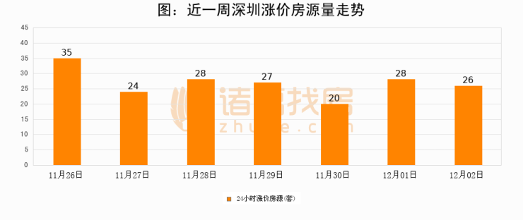 根据诸葛找房数据显示,深圳24小时涨价房源量为26套,较12月01日减少2套,环比下降7.1%。与此同时,涨价房源占比小幅回落,对于购房者来说是一个入市窗口期,购房者可抓住时机入市。
